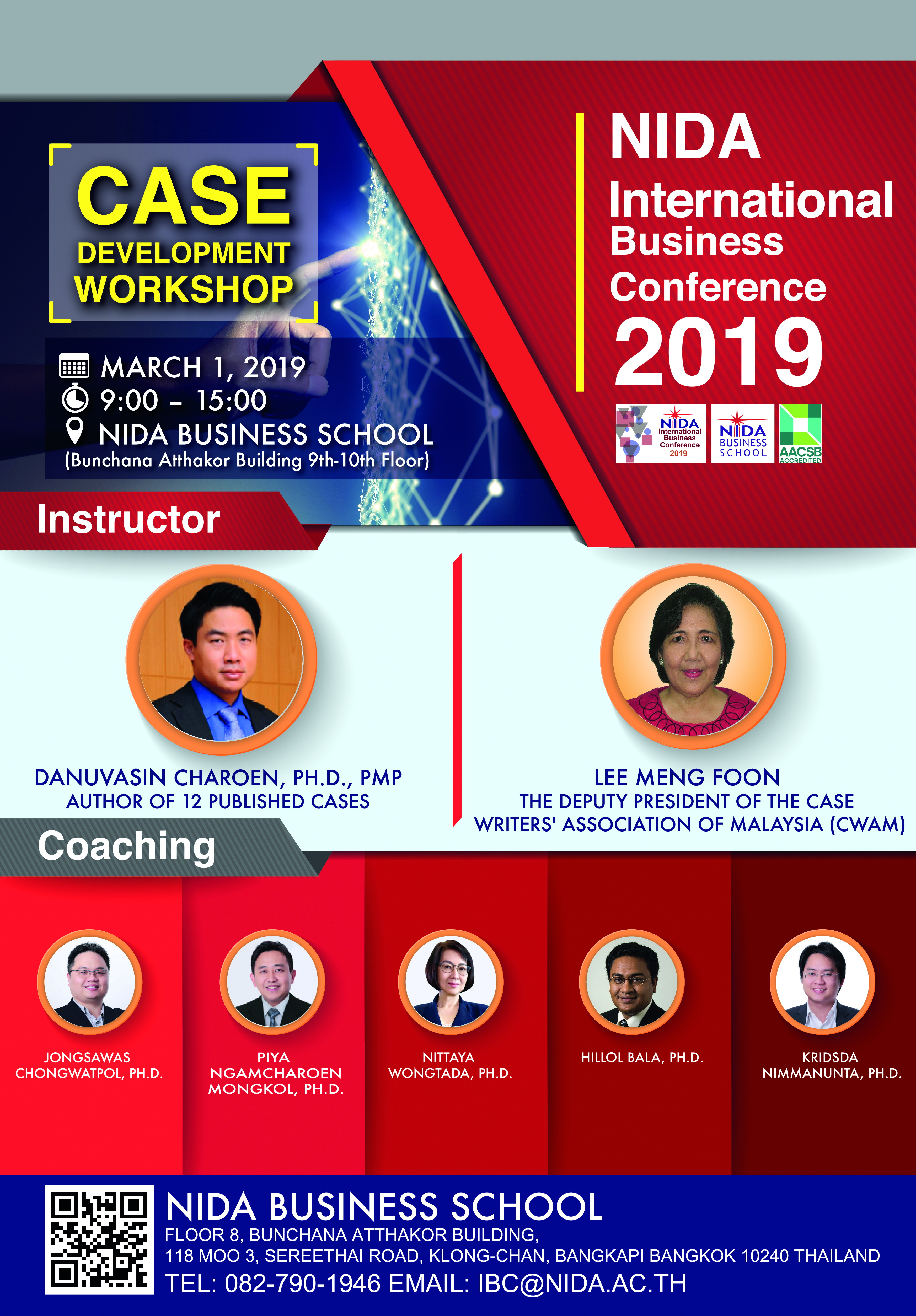 Case Development Workshop (Coaching) by Danuvasin Charoen, Ph.D., PMP Jongsawas Chongwatpol, Ph.D. Nittaya Wongtada, Ph.D. Anukal Chiralaksanakul, Ph.D. Piya Ngamcharoenmongkol, Ph.D. Thunyarat Amornpetchkul, Ph.D. Lee Meng Foon |