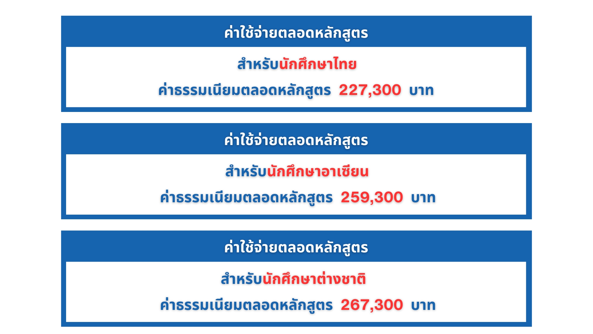 267,300 บาท (สำหรับนักศึกษาต่างชาติ)