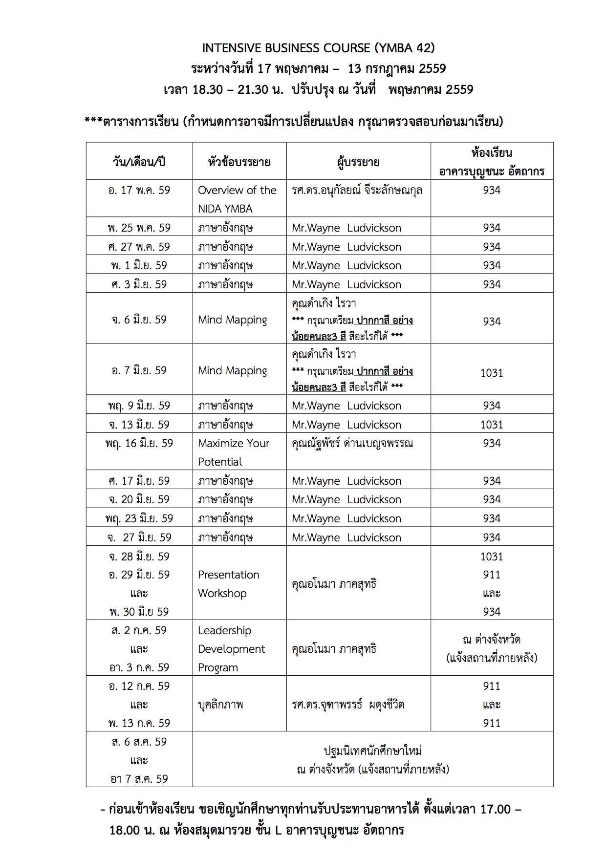 ตารางเรียน Intensive Business Course (YMBA 42)