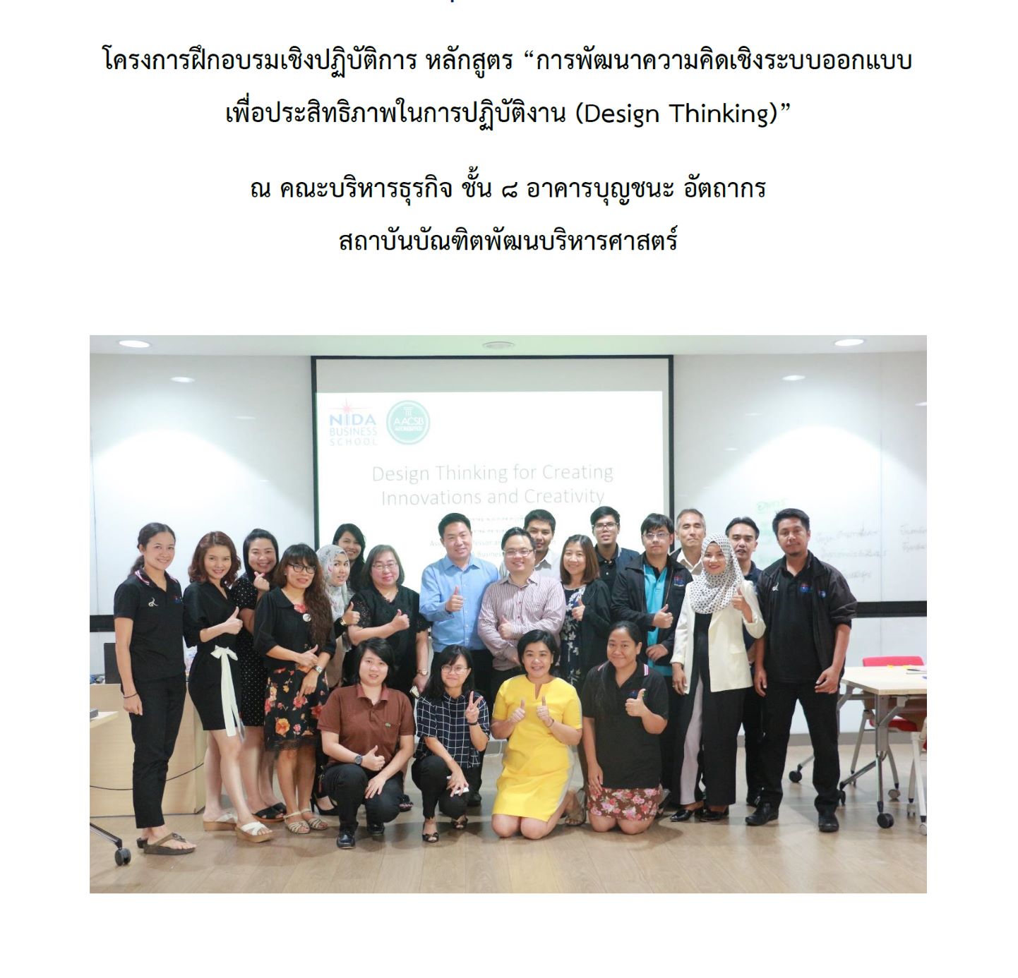 โครงการฝึกอบรมเชิงปฏิบัติการ หลักสูตร “การพัฒนาความคิดเชิงระบบออกแบบเพื่อประสิทธิภาพในการปฏิบัติงาน (Design Thinking)”