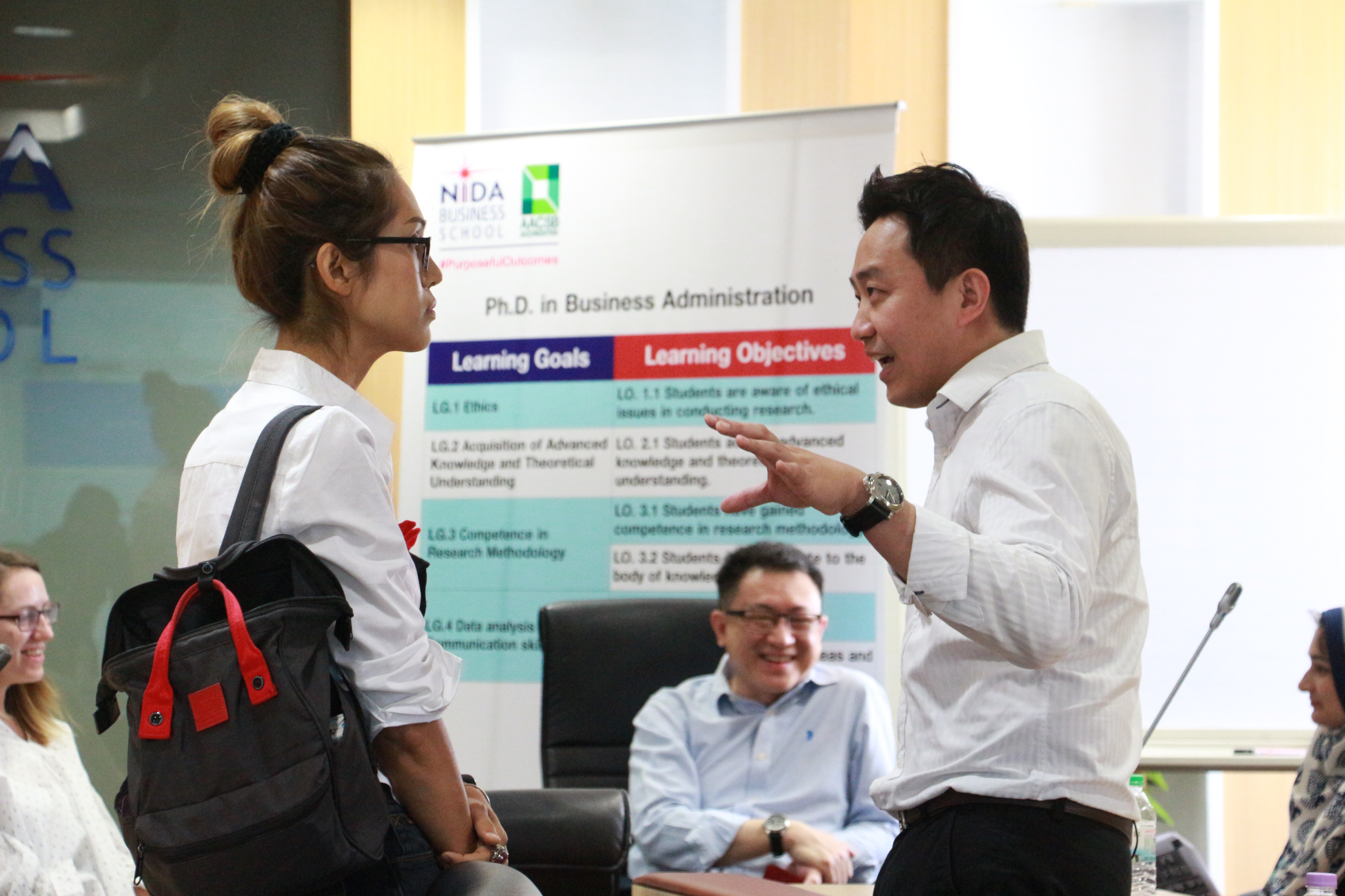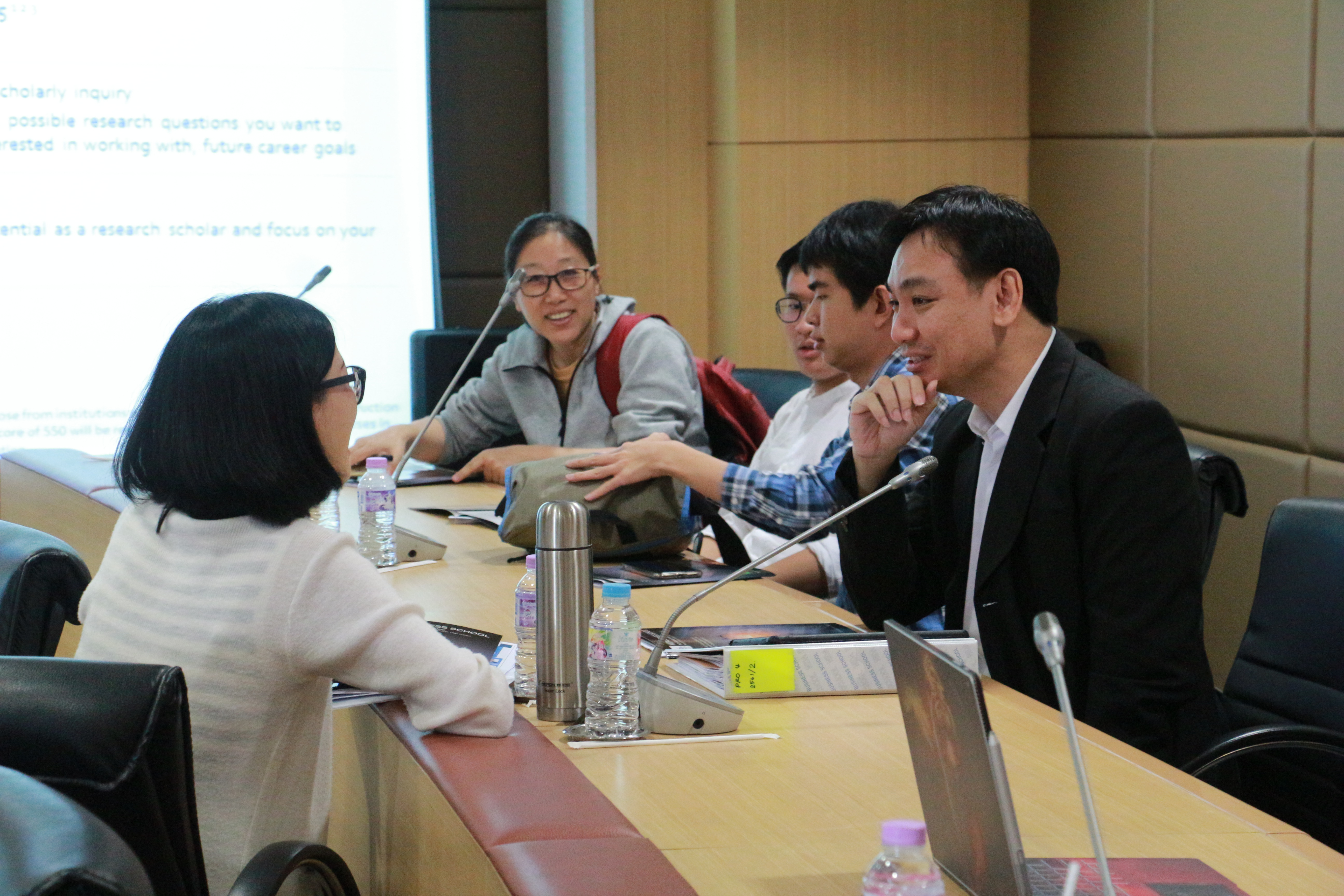 PhD Program faculty, current PhD students and candidates, and staff meet and greet prospective applicants and those interested in pursuing a PhD to answer any questions they may have. PhD alums also return to share their stories.