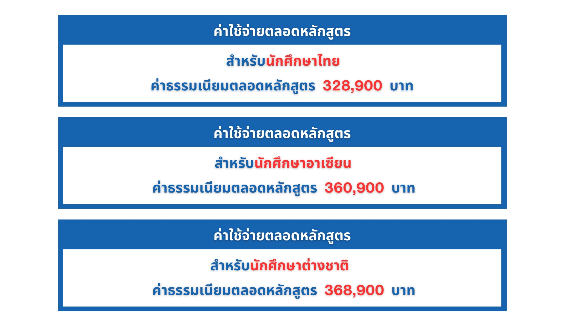 368,900 บาท (สำหรับนักศึกษาต่างชาติ)