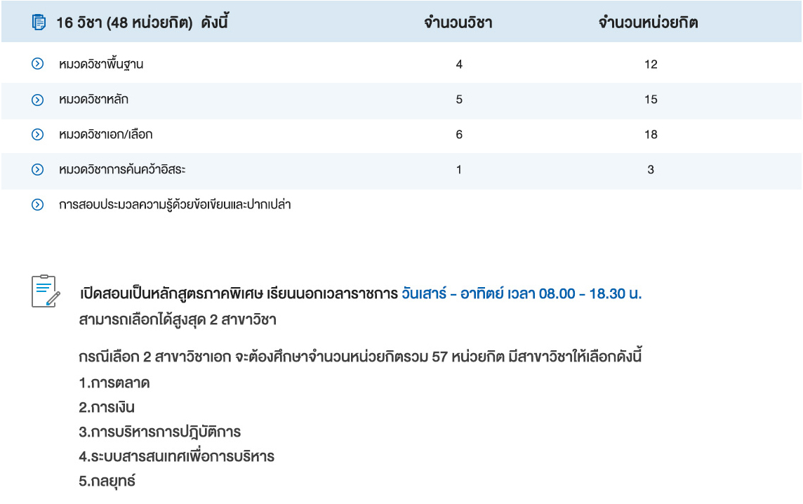 **หมายเหตุ: การเปิดวิชาเลือกเสรีขึ้นอยู่กับทางโครงการของคณะบริหารธุรกิจเป็นผู้พิจารณา ขอสงวนสิทธิ์ในการเปิดวิชาเลือกเสรี โดยขึ้นอยู่กับดุลยพินิจของทางคณะบริหารธุรกิจ